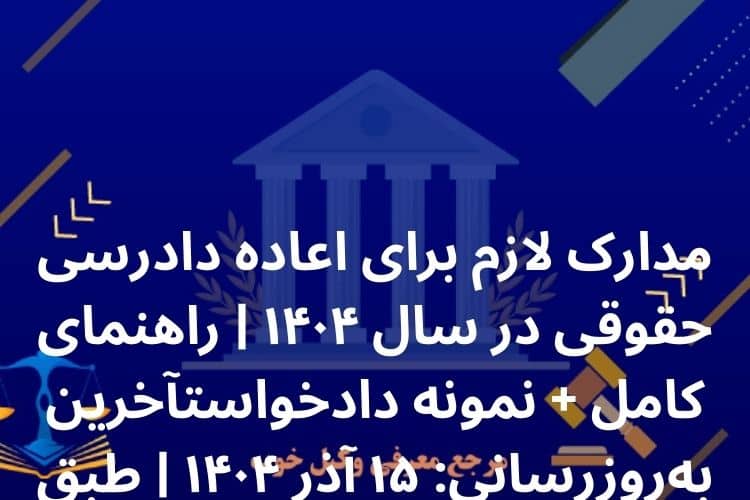 مدارک لازم برای اعاده دادرسی حقوقی در سال ۱۴۰۴ | راهنمای کامل + نمونه دادخواستآخرین به‌روزرسانی: ۱۵ آذر ۱۴۰۴ | طبق آخرین آرای وحدت رویه دیوان عالی کشور و قانون آیین دادرسی مدنی نویسنده مقاله: دکتر محمد امیرنجات ▪️ وکیل پایه یک دادگستری ▪️ دکتری حقوق خصوصی ▪️ بیش ...